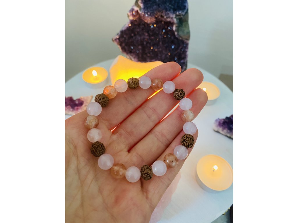 Je složený z růženínu (LÁSKA, SEBELÁSKA, HARMONIE), slunečního kamene (SVĚTLO, RADOST, ENERGIE) a rudrakshi (MÍR, SÍLA, OCHRANA)
